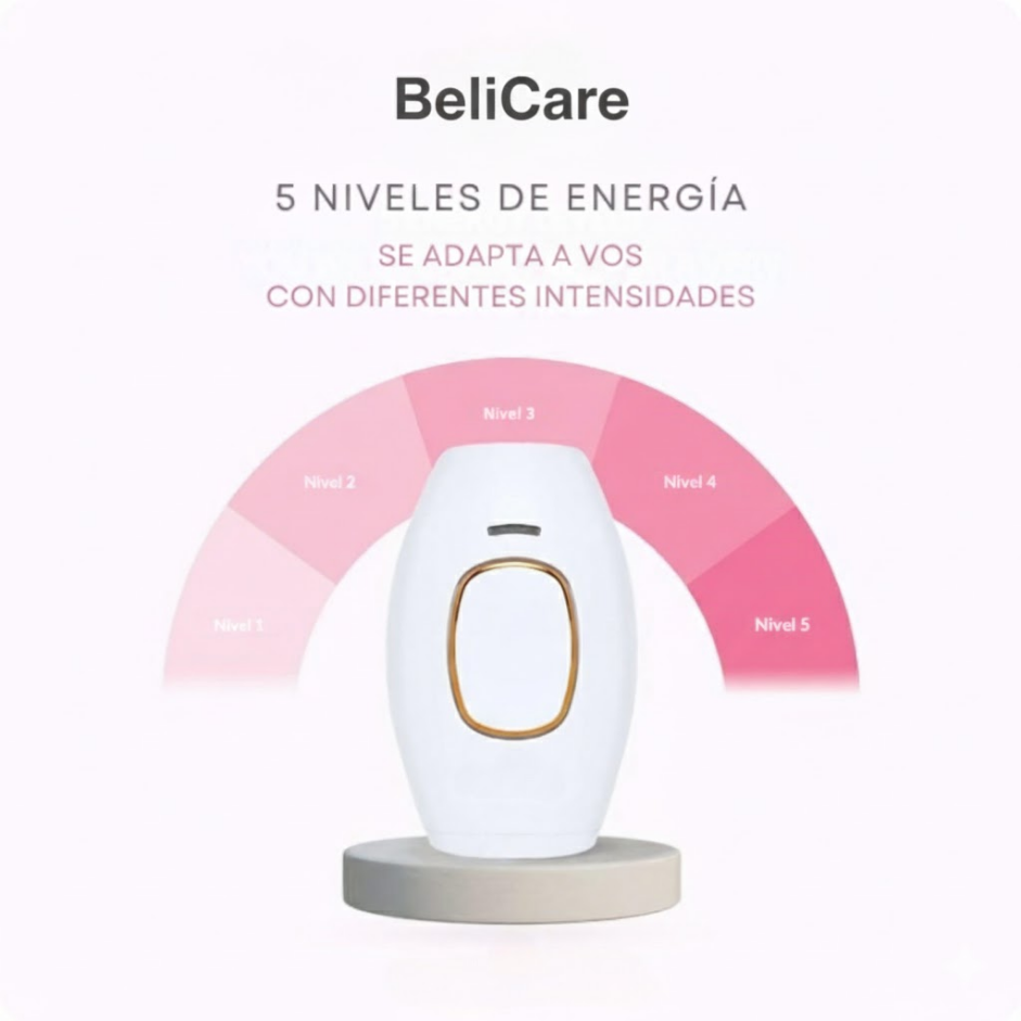 Nuestra Depiladora BeliCare utiliza tecnología láser permanente que reduce y elimina progresivamente el crecimiento del vello, ofreciendo resultados duraderos.